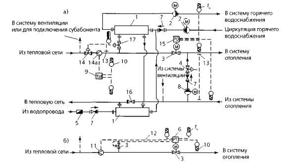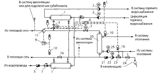 Ключевые слова: индивидуальный тепловой пункт, центральный тепловой пункт, автоматическое регулирование подачи тепловой энергии потребителям, жилые и общественные здания, тепловая энергия, отопление, горячее водоснабжение