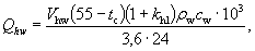 - при наличии баков-аккумуляторов нагреваемой воды у потребителей - по среднечасовому расходу тепловой энергии на горячее водоснабжение за отопительный период Qhw, вычисляемому по А.5.2, по формуле