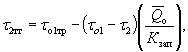 При выявлении несоответствия фактической производительности системы отопления Qро.пр (проектный расчетный расход тепловой энергии на отопление, на который подобраны отопительные приборы; принимается из проекта или по результатам фактических испытаний) требуемому расчетному расходу тепловой энергии на отопление Qро.тр (определяется по приложению А, где обозначается как Qо.макс.жил или Qо.макс.общ) необходимо рассчитать новые значения расчетных температур воды в подающем и обратном трубопроводах системы отопления. Выразив отношение фактической производительности системы отопления к требуемому расходу тепловой энергии на отопление из энергетического паспорта конкретного здания в виде коэффициента запаса поверхности нагрева отопительного прибора Кзап = Qро.пр/Qро.тр, определяют требуемые значения температуры воды в подающем τо1тр и обратном τ2тр трубопроводах системы отопления соответственно по формулам (Б.1) и (Б.2):