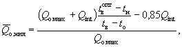 Qo.макс - расчетный расход тепловой энергии на отопление при расчетной температуре наружного воздуха для проектирования отопления to, Вт;