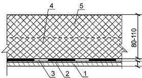 1 - лист ортотропного настила; 2 - антикоррозионный слой; 3 - защитно-сцепляющий слой; 4 - нижний слой покрытия; 5 - верхний слой покрытия Рисунок 4.2 - Конструкция дорожной одежды на ортотропной плите 4.3.2 Гидроизоляционные материалы (например, по ТУ 5774-004-17925162-2003 [1]) должны применяться в зависимости от климатического района строительства, определяемого по средней месячной температуре января с обеспеченностью 0,98 по СП 131.13330. 4.3.3 Допускается применять гидроизоляционные материалы для устройства защитно-сцепляющего слоя на мостах. В этом случае их применение должно осуществляться по специальным рекомендациям и технологическим регламентам, разработанным применительно к каждому конкретному мосту. Требования к гидроизоляционным материалам приведены в приложении А. 4.4 Технология устройства нижележащих слоев покрытий на железобетонной плите приведена в разделе 6. 4.5 Технология устройства нижележащих слоев покрытий на ортотропной плите приведена в разделе 7. 4.6 Технология устройства покрытий на мостах и искусственных сооружениях приведена в следующих разделах: - устройство асфальтобетонных покрытий - раздел 9; - устройство цементобетонных и фиброцементобетонных покрытий - раздел 10. 4.7 Контроль выполнения работ приведен в разделе 11. 5 Требования к материалам5.1 Материалы для тонкослойного покрытия, гидроизоляции и защитно-сцепляющего слоя5.1.1 Покрытия на ортотропной плите, как правило, следует выполнять тонкослойными с использованием полимерно-битумных по ГОСТ Р 52056 и других вяжущих. 5.1.2 В составе тонкослойного покрытия следует использовать полиуретановые, эпоксидно-полиуретановые, тиоколовые, полиметилметакрилатные полимерные материалы. Физико-механические характеристики тонкослойных покрытий приведены в таблице 5.1. 5.1.3 Бетон выравнивающего слоя должен иметь класс прочности в пределах от В25 до В30 по ГОСТ 26633, марку по морозостойкости F300 по ГОСТ 10060, водонепроницаемость не ниже W8 по СП 35.13330. Примечания 1 Применение бетона класса по прочности выше В30 не рекомендуется. 2 Применение для выравнивающего слоя цементно-песчаных растворов не допускается. 5.1.4 Для армирования защитного слоя следует применять плоские сварные сетки из арматурной стали диаметром от 4 до 5 мм класса Bp I (AI) с ячейкой 100×100 мм по ГОСТ 23279. Таблица 5.1 - Физико-механические характеристики тонкослойных покрытий