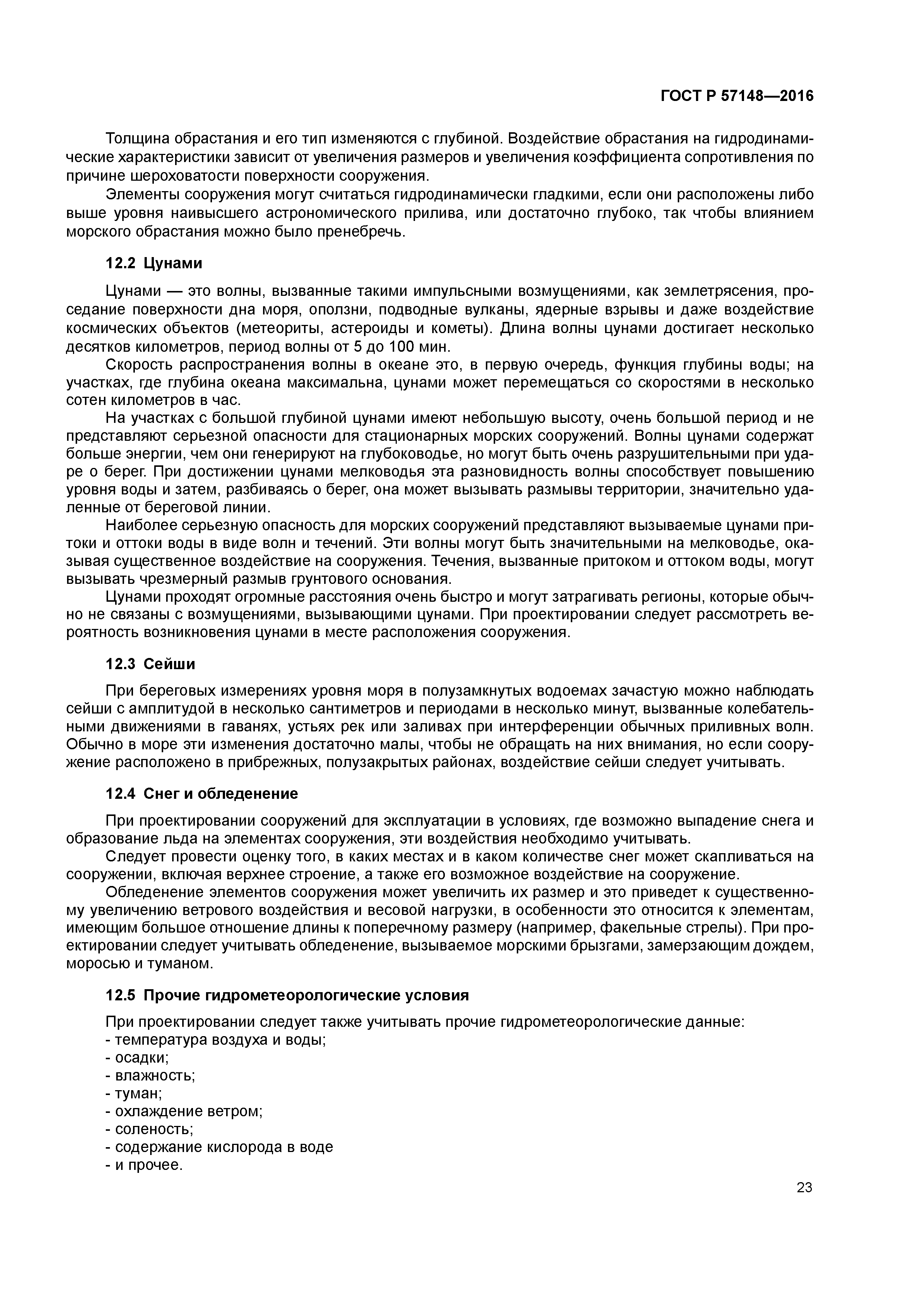 | Оглавление: | 1 Область применения 2 Нормативные ссылки 3 Термины и определения 4 Обозначения 5 Сокращения 6 Определение гидрометеорологических параметров 6.1 Общая часть 6.2 Экспертная интерпретация гидрометеорологических данных 6.3 Выбор соответствующих параметров для определения расчетных воздействий или нагрузочных эффектов 6.4 Гидрометеорологические данные 6.5 Виды штормов в регионе 6.6 Направленность 6.7 Экстраполяция данных на редкие условия 6.8 Гидрометеорологические параметры для оценки усталости 6.9 Гидрометеорологические параметры для краткосрочных операций 6.10 Мониторинг гидрометеорологических параметров 7 Глубина воды, приливы и штормовые нагоны 7.1 Общие сведения 7.2 Приливы 7.3 Штормовой нагон 8 Ветер 8.1 Общие сведения 8.2 Ветровые воздействия и нагрузочные эффекты 8.3 Профиль скорости ветра и осредненная скорость ветра 8.4 Спектры ветра 9 Волны 9.1 Общие сведения 9.2 Волновые воздействия и нагрузочные эффекты 9.3 Периоды волн (истинный, кажущийся, встречи) 9.4 Кинематика двумерной волны 9.5 Максимальная высота отдельной волны для длительных периодов повторяемости 9.6 Спектры волнения 9.7 Функция направленного распространения волны и коэффициент распространения 9.8 Отметка гребня волны 9.9 Специальные требования к определению воздействий от волнения 10 Течения 10.1 Общие сведения 10.2 Скорости течения 10.3 Профиль течения 10.4 Растяжение профиля течения 10.5 Течения и препятствия 10.6 Специальные требования к определению воздействий от течений и размывов 11 Морской лёд 11.1 Общие сведения 11.2 Типы льда 11.3 Морфология льда 11.4 дрейф льда 11.5 Свойства льда 11.6 Специальные требования к определению воздействий от льда 11.7 Управление ледовой обстановкой 12 Иные факторы внешней среды 12.1 Морское обрастание 12.2 Цунами 12.3 Сейши 12.4 Снег и обледенение 12.5 Прочие гидрометеорологические условия Приложение А (справочное) дополнительная информация и указания Приложение Б (справочное) Сведения о частотных спектрах волн Приложение В (справочное) Региональная информация Приложение ДА (рекомендуемое) Перечень основных гидрометеорологических параметров, включаемых в ВЛТУ Приложение ДБ (справочное) Сведения о соответствии ссылочных национальных стандартов международным стандартам, использованным в качестве ссылочных в примененном международном стандарте Библиография |