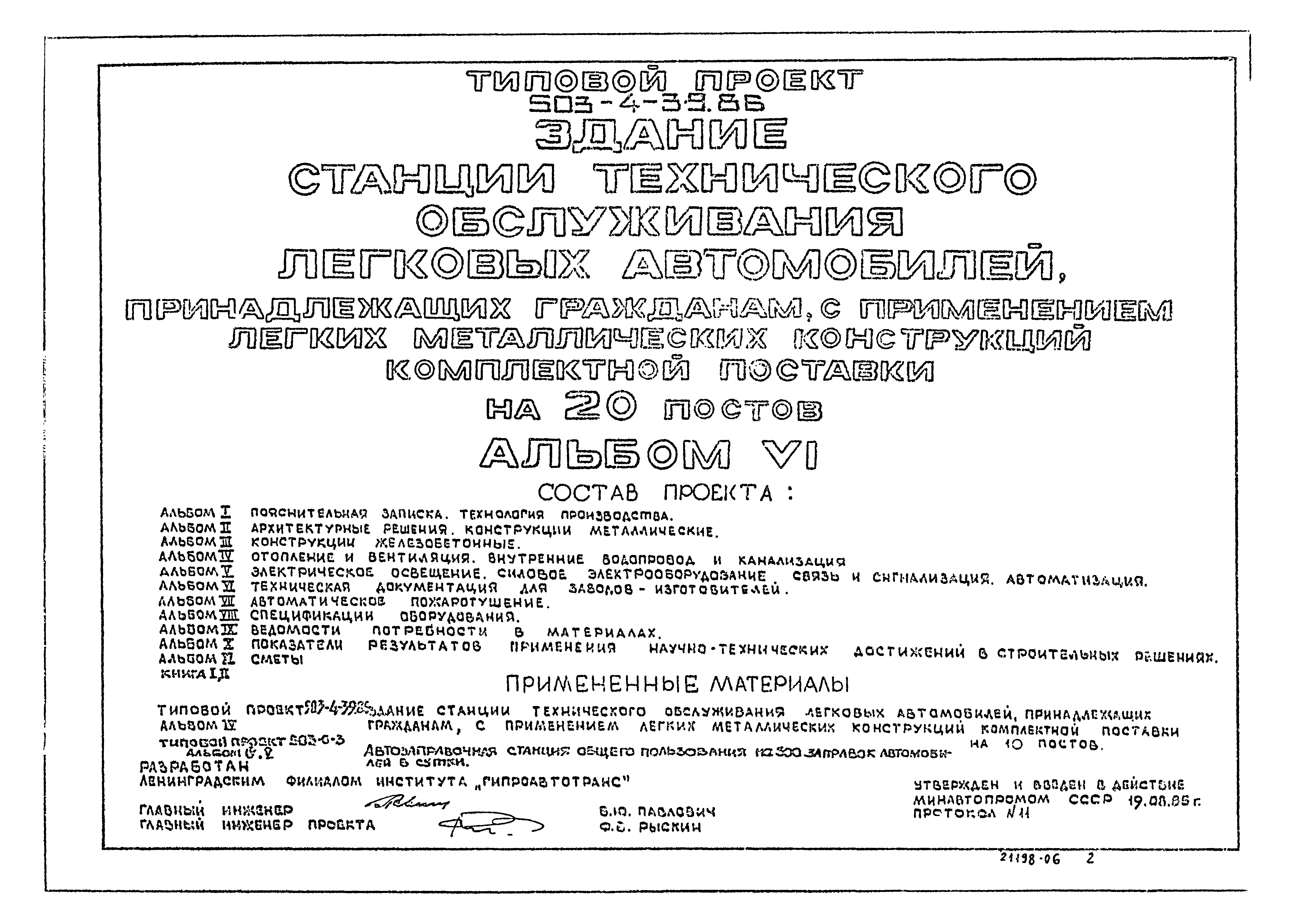 | Обозначение: | Типовой проект 503-4-39.86 |