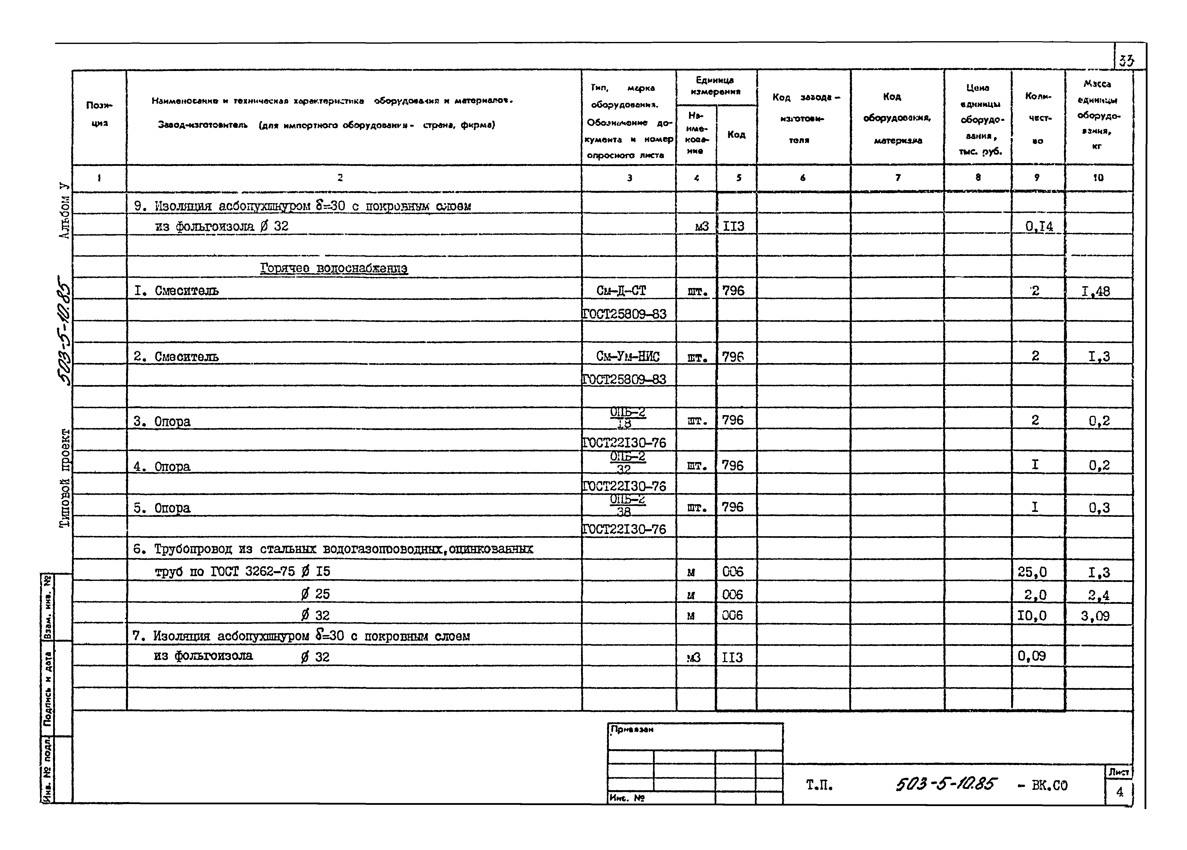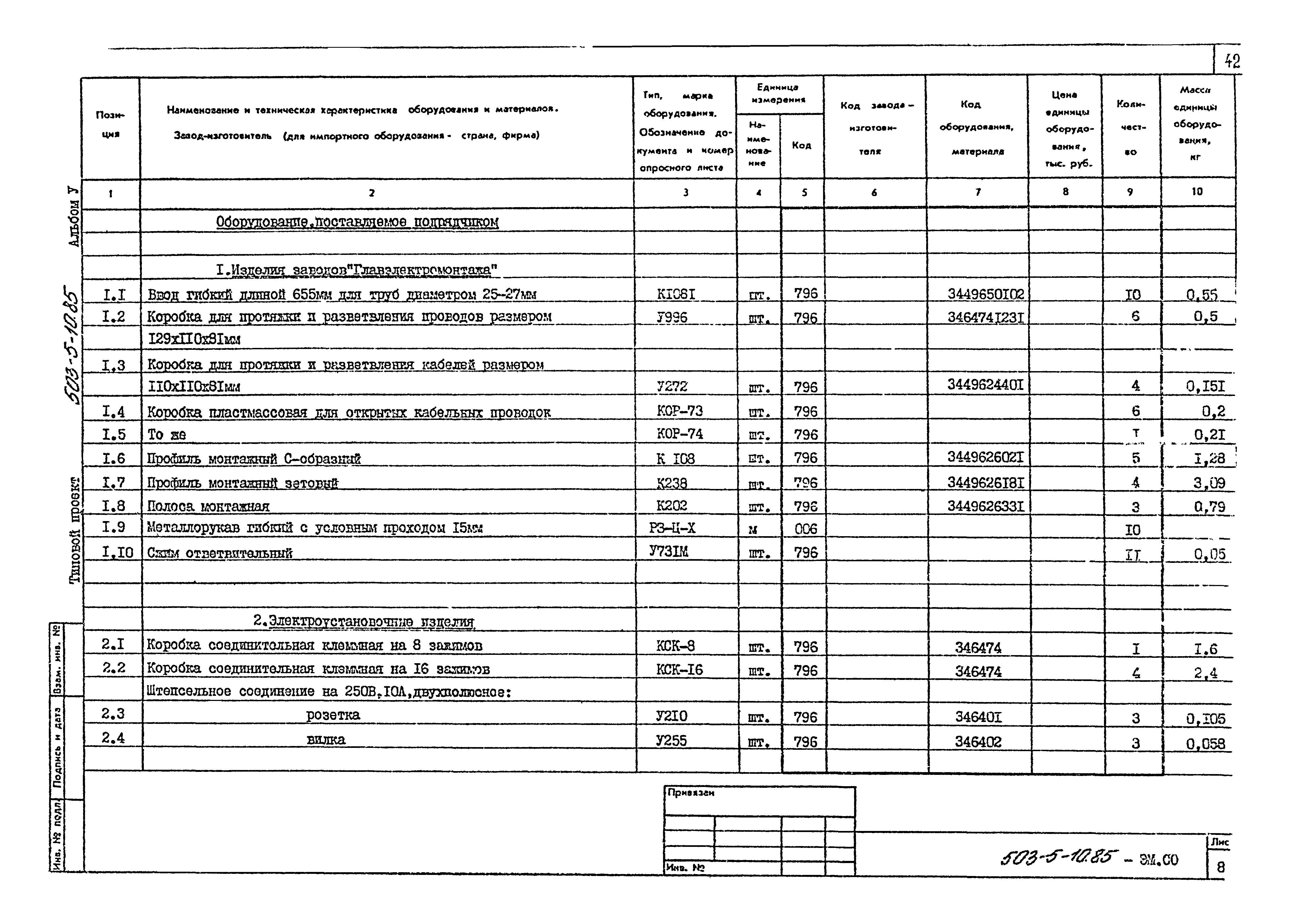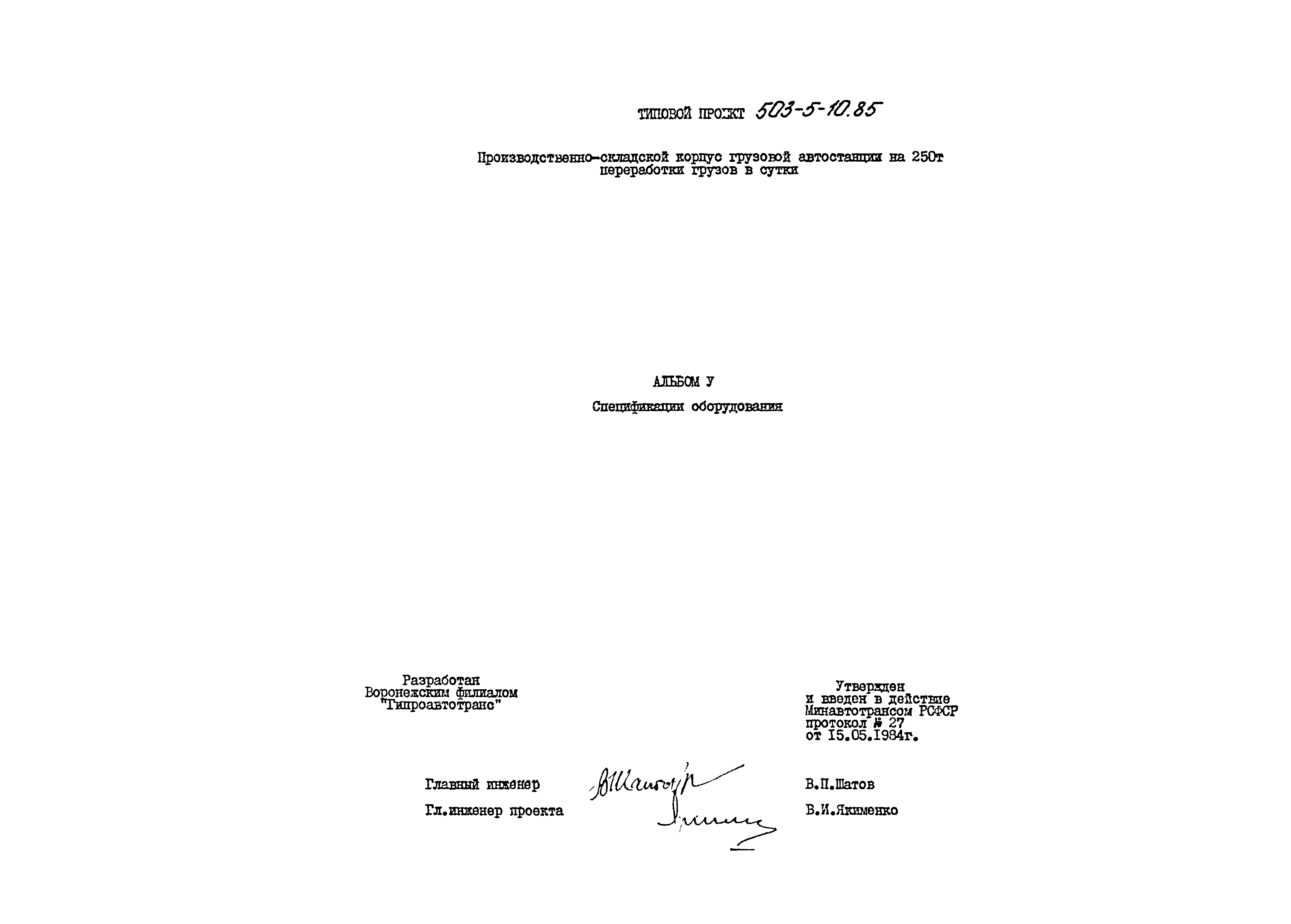 | Обозначение: | Типовой проект 503-5-10.85 |