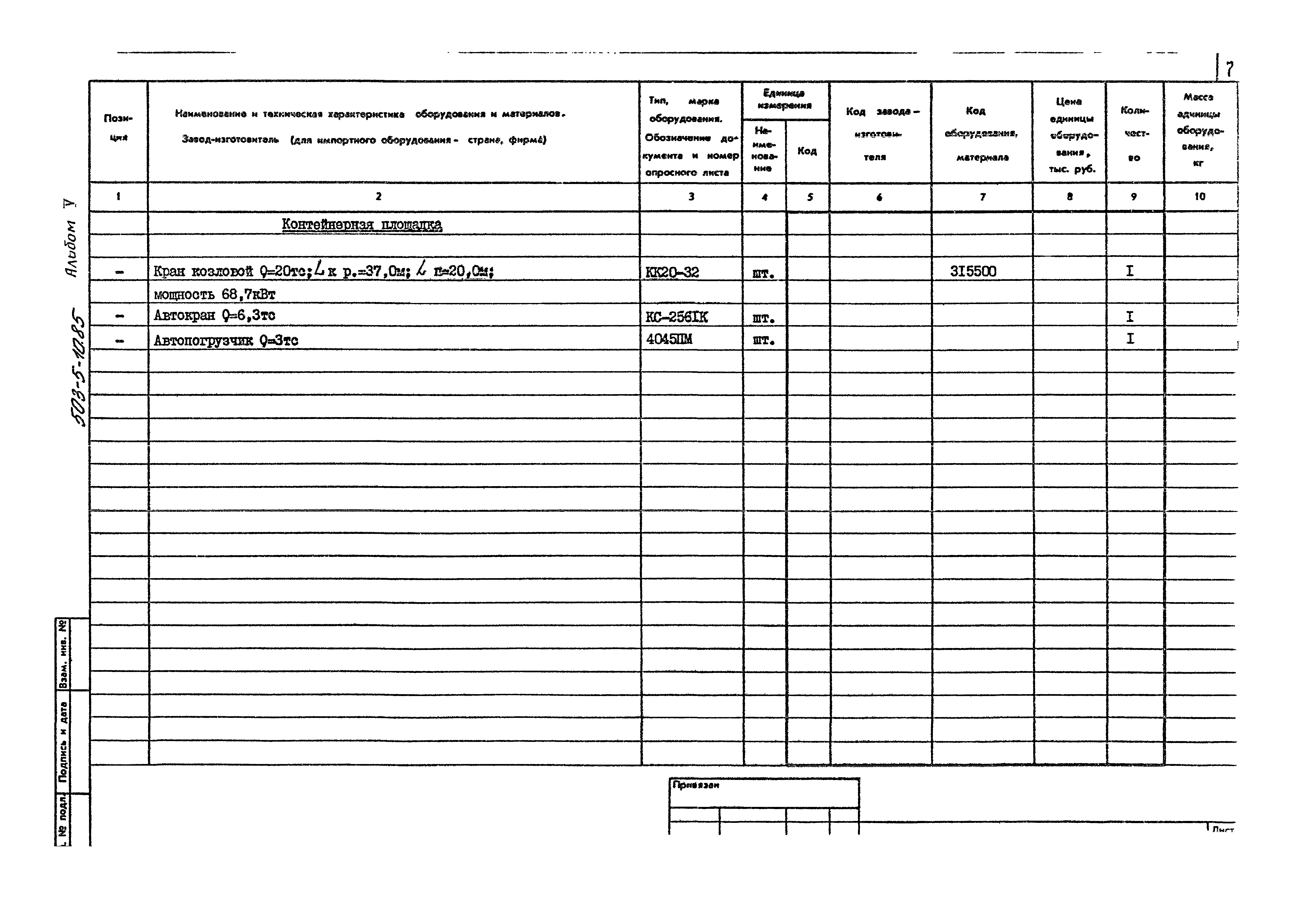 | Название рус.: | Альбом V. Спецификации оборудования |
