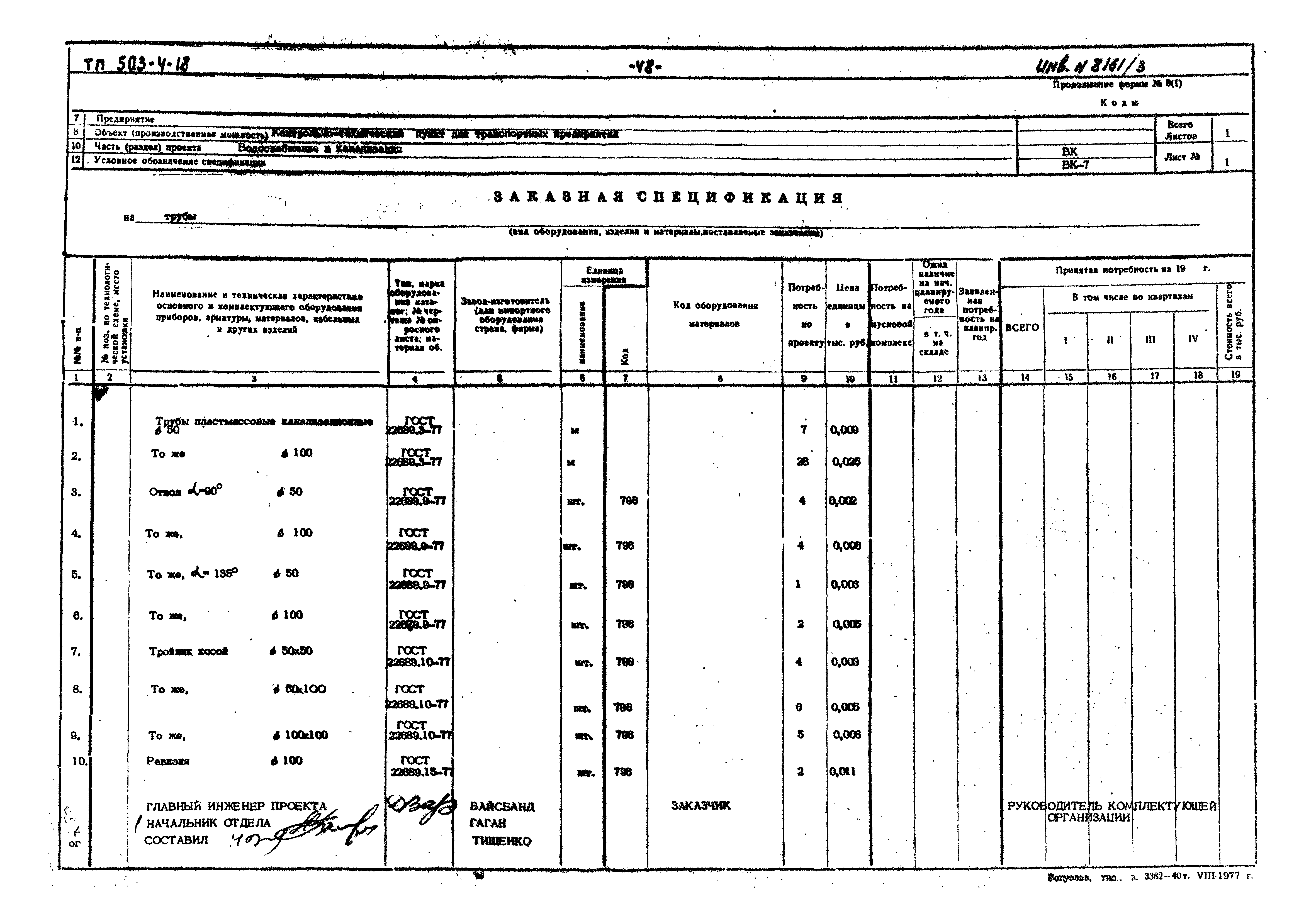 Скачать Типовой проект 503-4-18 Альбом III. Заказные спецификацииДата актуализации: 10.08.2017