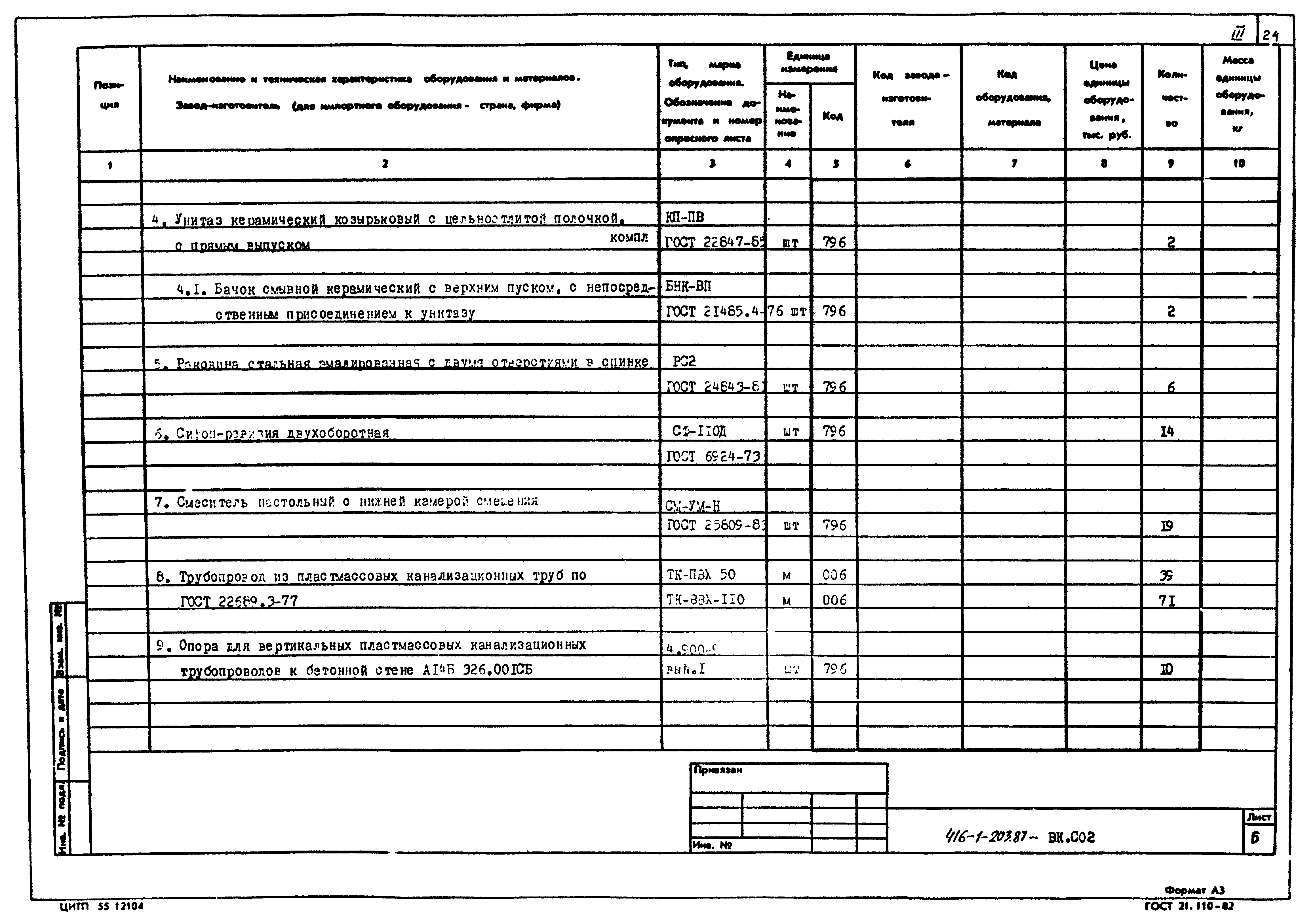 Скачать Типовой проект 416-1-203.87 Альбом III. Спецификации оборудованияДата актуализации: 10.08.2017