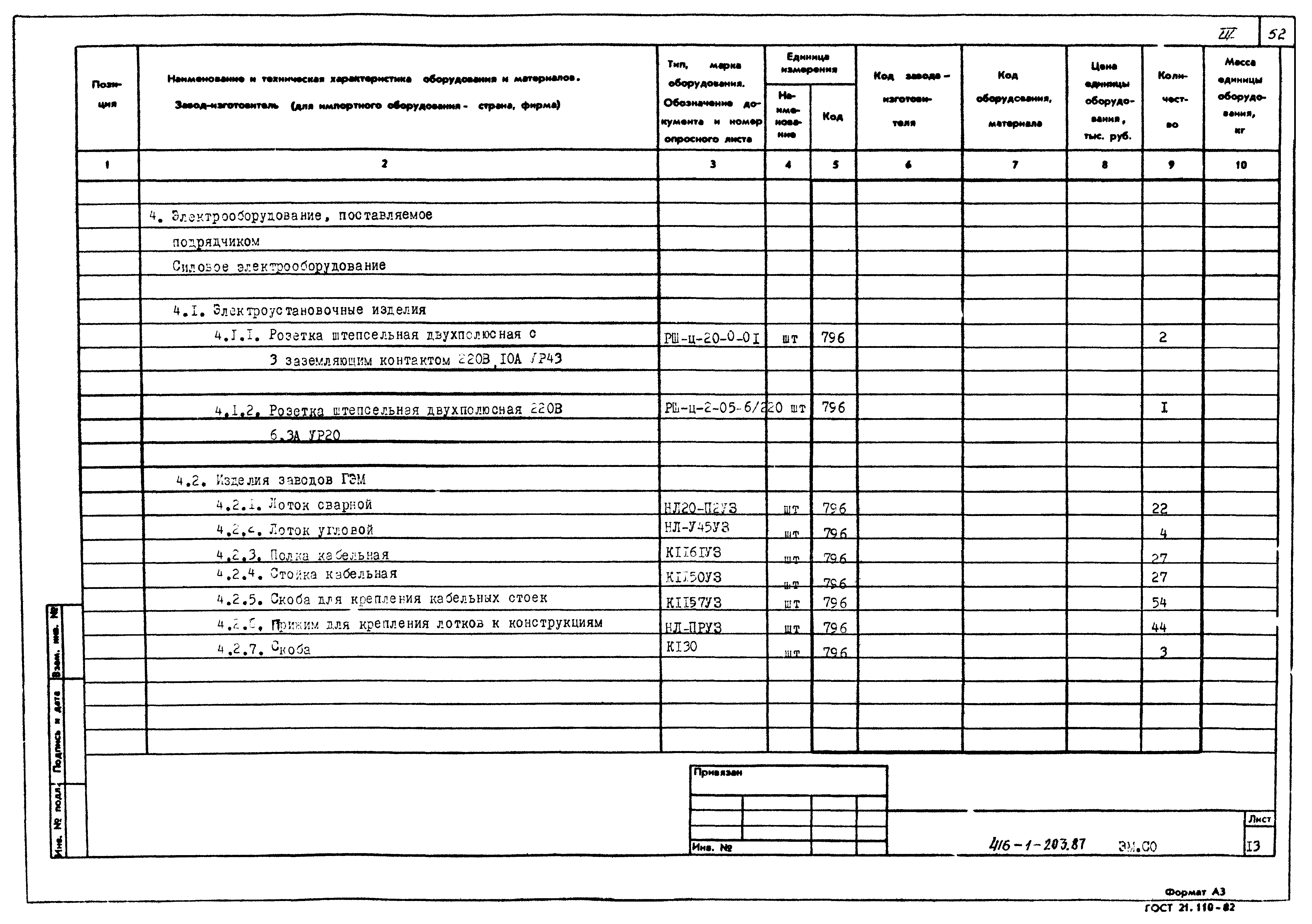 | Название рус.: | Альбом III. Спецификации оборудования |