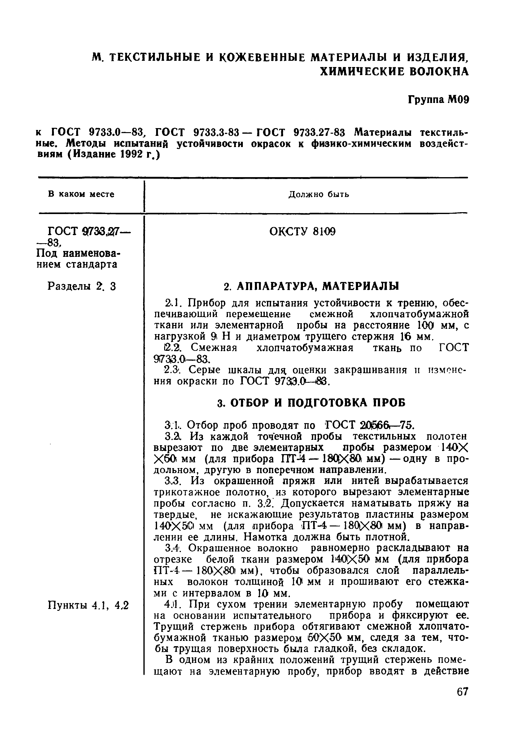 | Заменяет собой: | ГОСТ 9733-61 «Красители. Методы испытаний устойчивости окрасок на тканях, трикотаже, пряже и волокне к физико-химическим воздействиям» (в части разд. II, п. 33) |